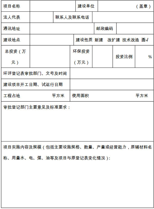 首页 > 资料下载 > 建设项目竣工环境保护验收申请表(填报环境影响登记表的项目)