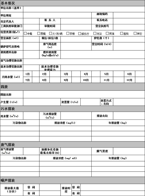 重庆市排放污染物许可证申报表(餐饮娱乐服务业)(区县)