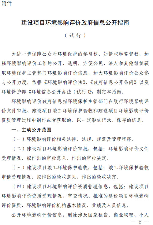 首页 > 资料下载 > 建设项目环境影响评价政府信息公开指南(试行)