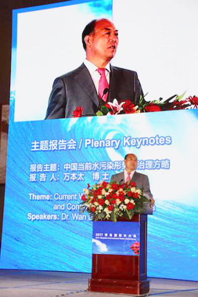环保部原总工程师万本太报告主题是“中国当前水资源形势与治理方略”。万本太用环保部、国土资源部、水利部大量的监测数据说明,中国当前污染的程度是污染严重,形势严峻;污染原因是排污量大、治理不彻底、监管不到位;存在的问题是治表不治本、拒绝新技术、不尊重生态规律。他提出了关于“十三五”水污染防治的宏观思路:遵循山水林田湖是一个统一生命体的基本理念,以恢复改善流域水生态系统健康,以生物生态技术为主流,以点源治理为重点,分散治理和集中治理相结合,点源治理和面源治理统筹防治,减少流域水环境压力,努力使水环境质量得到改善。基本方针是以节水和污水循环、多级、重复利用为原则。
