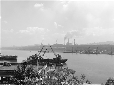 重庆市长寿经开区的运输码头,对面就是搬迁过来的重钢。