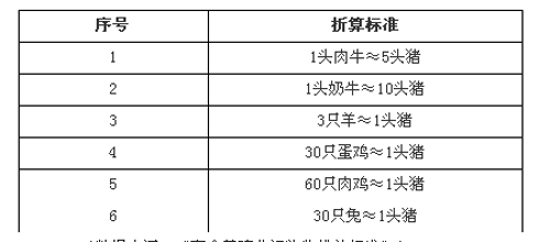 以猪为标准,养殖量折算标准见表2。