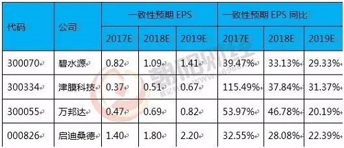 公司是我国煤化工和石油化工废水处理龙头企业。目前公司主营业务四块:工业水、危固废、黑臭河、新材料及设备销售。已从过去的环保水处理工程公司铺开成长为环境综合服务提供商。公司16年收入和净利润分别为16.85亿元、2.64亿元,同比增速为-14.54%、-8.98%,略有回落。然而,2017年半年报业绩预告中,利润预计较上年同期增长42.33%-55.78%, 业绩明显出现好转。主要原因是公司惠州项目设备供货、工程施工等顺利推进,导致公司净利润有较大提高。图4: 2009-2017年万邦达累计净利润