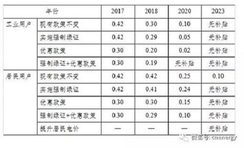 如果2018年能够推出绿色证书强制交易,考虑利用三年左右的时间,通过适宜的政策设计,使绿色证书的价格达到0.05元/千瓦时左右,到2023年再达到0.1元/千瓦时左右,则预期2023年前光伏发电可以在上网侧实现全面平价。