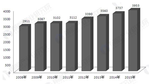 2008-2015年美国地热发电累计装机容量(单位:MW)