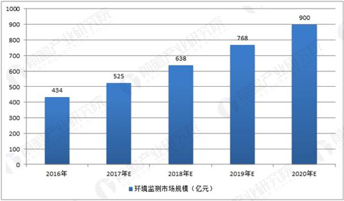 数据来源:前瞻产业研究院整理随着国家对环境监测行业的政策倾斜和资金投入加大,整个社会对环境问题的关注度提升,环境监测站点增加以及环境监测技术升级,环境监测行业“十三五”期间将延续前几年的行业景气度。根据预测,2020年环境监测行业市场规模有望突破900亿元,五年复合增速约为20%左右。