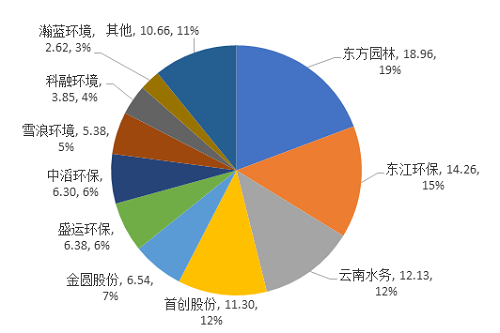 图4 2014年至今危废并购交易规模-并购方统计图(单位:亿元)