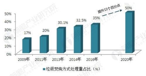 资料来源:前瞻产业研究院《垃圾焚烧炉行业分析报告》随着大气污染越来越严重,垃圾发电被提到前所未有的高度,同时政策利好给相关设备市场带来机遇。目前,我国城市生活垃圾焚烧处理也迎来了大规模投资建设期,行业进入市场化全面发展阶段,垃圾发电行业的快速发展将极大地拉伸垃圾发电设备的需求量。