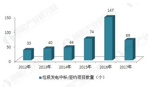 2012年以来,曾因环境问题发展受阻的垃圾焚烧发电项目出现一股投建潮。据不完全统计,2014年我国中标/签约垃圾焚烧发电项目数约为44个,2015年垃圾焚烧发电中标/签约项目约为74个,2016年,垃圾焚烧发电中标/签约项目约为147个。2012-2016年中国垃圾发电中标/签约项目规模(单位:个)