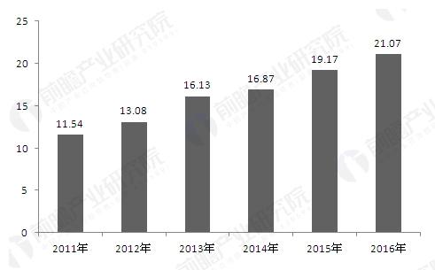 采用上市公司分行业比例,及公司在行业中的市场份额等比例,进行推算现阶段我国垃圾发电行业的盈利水平得出,近年来,我国垃圾发电行业盈利水平呈现逐年上升的态势,2015年,我国垃圾发电行业利润总额为19.17亿元,同比增长15.63%。2016年,我国垃圾发电行业利润总额为21.07亿元,同比增长9.91%。2011-2016年中国垃圾发电行业利润总额及其增速走势图(单位:亿元)