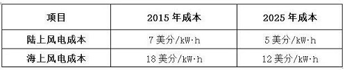 2015—2025年陆上和海上风电成本降幅预测(来源:中国经济信息社整理)