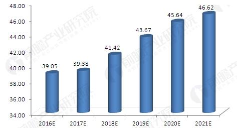 虽然目前我国开始强调经济增长质量,但我国正处于工业化快速发展时期,固废产生量未来几年依然有望维持在8%左右的增长速度,即到2021年,我国工业固废产生量有望突破46亿吨。2016-2021年中国工业固体废物产生量情况预测(单位:亿吨)