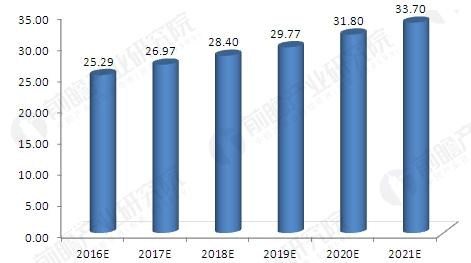 2016-2021年中国工业固体废物市场容量预测(单位:亿元)