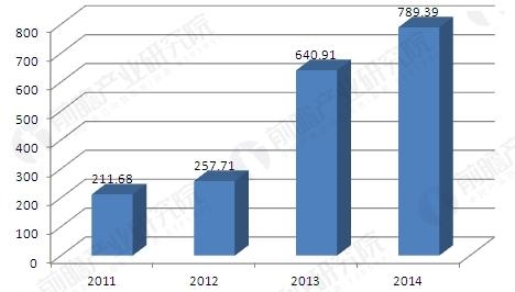 2011-2014年治理废气项目完成投资(单位:亿元)