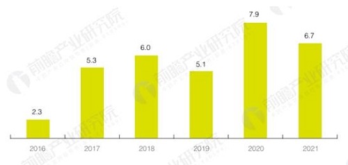 2016-2021年全球海上风电新增装机容量预测(单位:GW)