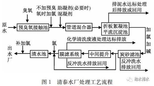 清泰水厂膜过滤深度处理系统采用压力式中空纤维膜,全系统设计总净产水量30万m3/d,由主过滤系统和水回收系统组成。