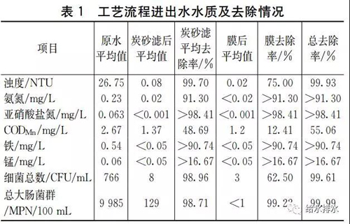 (1)膜系统长期运行结果表明,膜对有机物和氨氮基本没有去除效果,但是对浊度和微生物具有很好的去除效果,其出水浊度平均在0.02 NTU,出水大肠菌群数<1 MPN/100 mL。