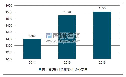2014-2016年中国再生资源行业规模以上企业数量
