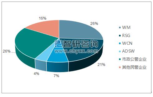 此外,环保政策的严格执行也加快了私营环保企业的大发展。据美国环保部EPA的统计,以美国垃圾填埋市场为例,上世纪90年代末的环保监管趋严使得美国国内大部分的垃圾填埋企业和固废回收企业倒闭,从90年代初期的6000家减少到不足2800家。同时也使得固废回收业务由原先的政府经营为主转向私营企业为主,从上世纪90年代初期的75%市场份额下滑至2008年的33%。截止2016年,美国国内的固废回收和循环利用企业主要有WM、RSG、WCN、ADSW,该四家企业占据了美国58%的市场份额,而由政府经营的企业仅占26%。美国垃圾填埋市场主要企业市占率