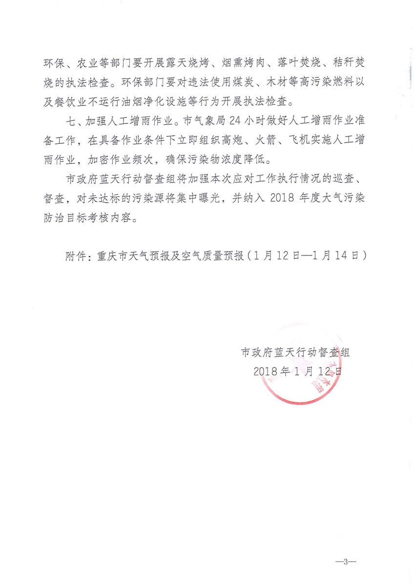 关于启动2018年第一次空气污染应对工作的预警函