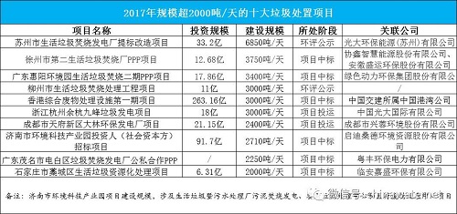 梳理2017年规模达2000吨/日以上的前十大垃圾焚烧项目,笔者发现,参与的主体多为专业类的环保企业,很少看到中字头大型央企的身影。不过,值得注意的是垃圾焚烧所建的规模越来越大,日处理规模从几百吨,扩大到几千吨最高达6850吨。垃圾焚烧“大建设”的时代已然来临?