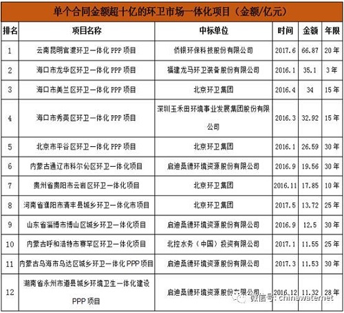 原标题:“中央军”与大建设 2017十大水环境综合类&固废项目