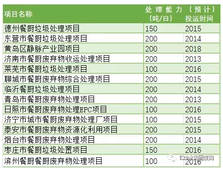 山东省在餐厨垃圾处理能力方面位居全国领先梯队。2014年4月1日起颁布了《山东省餐厨废弃物管理办法》,并在“十二五”期间大力推动餐厨垃圾处理厂建设,大幅提高了山东省处理能力。据E20研究院数据库不完全统计,截止到2017年11月,山东省已建(含在建)餐厨垃圾处理厂14座,总处理能力达2300吨/日,各地级市建厂后大幅缩小了餐厨垃圾收运半径,全省处理能力整体较为乐观。在处理需求方面,山东由于人口基数较大,餐饮业相对发达,餐厨垃圾产生量也明显高于我国大部分省份,因此,山东地区餐厨垃圾处理行业虽发展相对较好,但产能仍面临扩充需求。图表 4 山东省餐厨垃圾处理项目统计