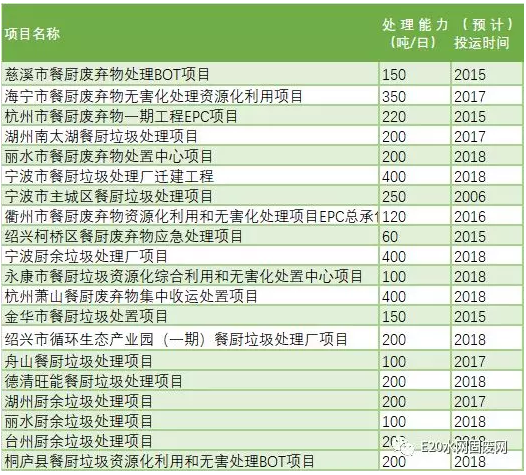 图表 6 浙江省餐厨、厨余垃圾处理项目统计