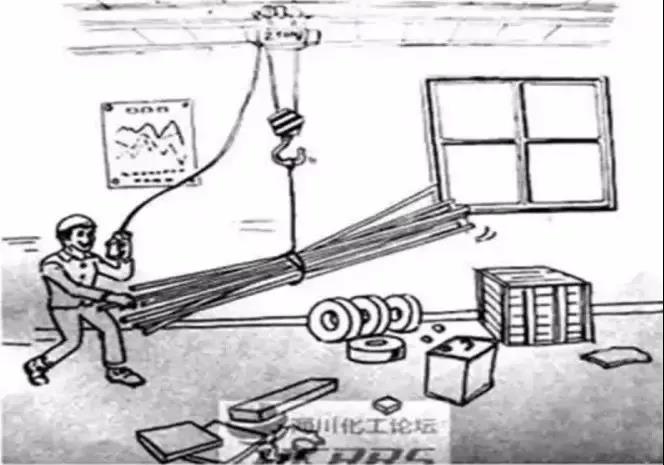 ① 采用行车吊运钢瓶,违规