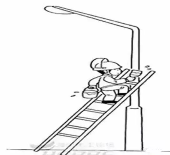 ② 梯子摆放不正确,斜靠在电杆上,应使用升降平台或脚手架