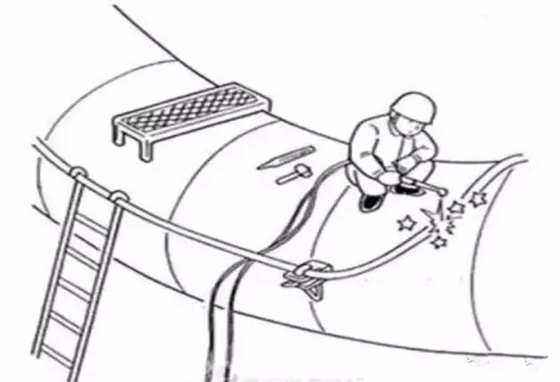 ④ 焊接中的贮槽出口阀门未断离或封盲