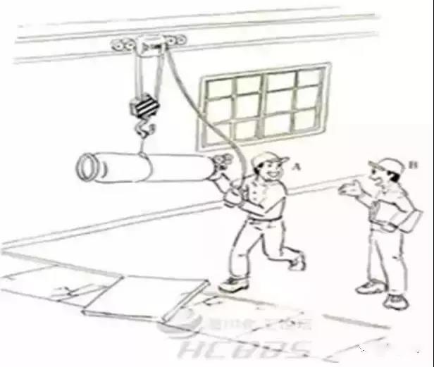 ⑥ 吊运中用手扶,易砸伤