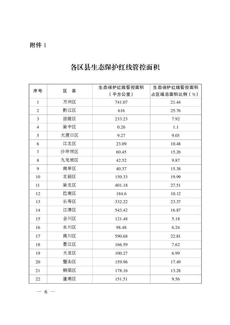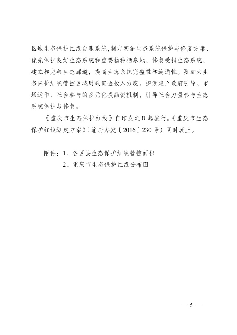 重庆市人民政府关于发布重庆市生态保护红线的通知